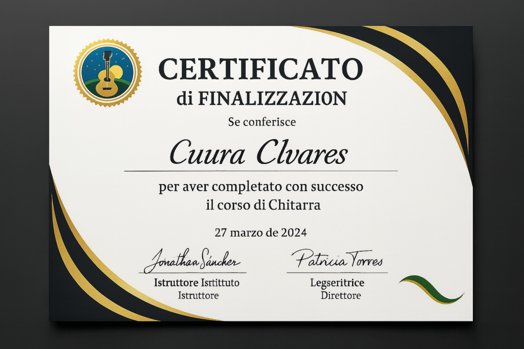 Al termine del corso, riceverai il tuo Certificato Digitale di Completamento, valido a livello internazionale, pronto per valorizzare la tua carriera musicale, aprire porte in chiese, eventi e scuole, o persino trasformare la tua nuova abilità in un guadagno extra insegnando, esibendoti o creando contenuti.